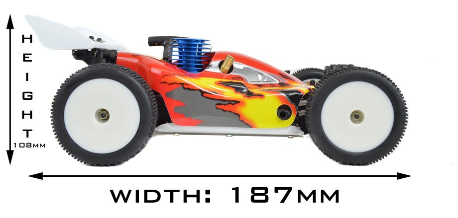 The Acme Racing NB16 is a 1:16 scale nitro RC buggy that delivers all the excitement and realism of larger nitro models in a compact, highly accessible package. Often described as "half the size but twice the fun", the NB16 packs full hobby-grade engineering into a super mini chassis that can be enjoyed almost anywhere - from back gardens to dedicated RC tracks.