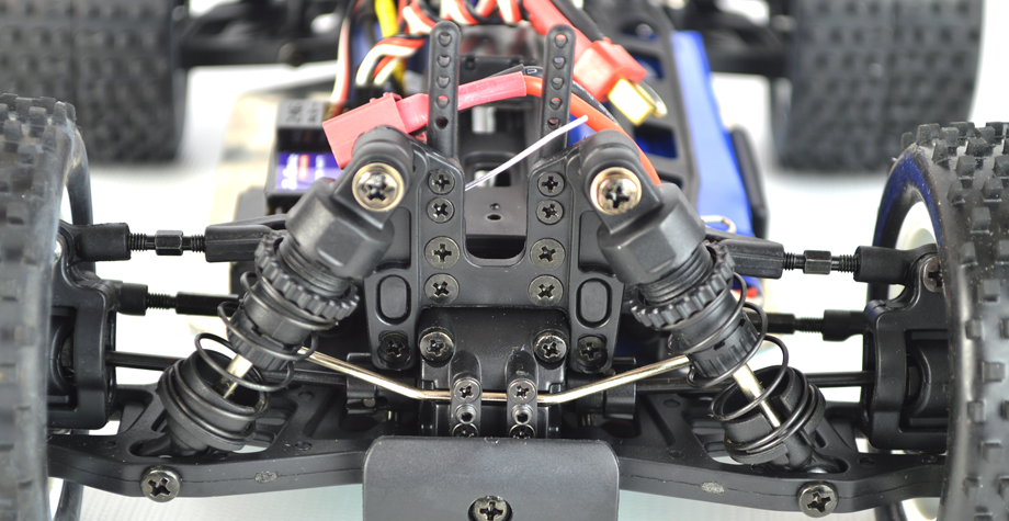 The Pioneer uses independent oil-filled shocks with increased thickness to cope with high-speed impacts and aggressive driving. Shock angle, spring tension, and camber are adjustable, allowing drivers to fine-tune handling characteristics.