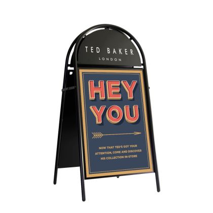 The Signwaves Booster Pavement Sign is a premium A-board designed to combine eye-catching presentation with durable construction. Its semi-circular header panel provides an additional branding area for permanent messaging, while the double-sided poster display offers versatile advertising potential for promotions, menus, or directional signage.